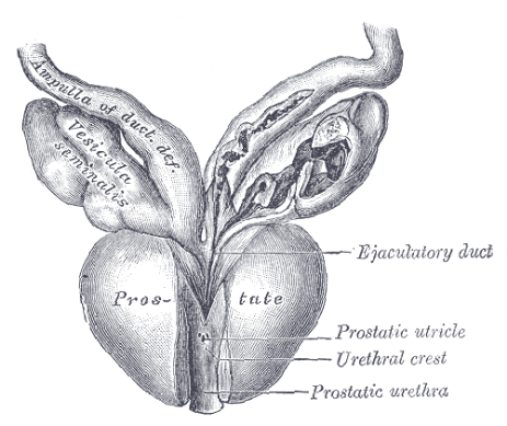 Bei Männern wird zusätzlich ab dem 45. Lebensjahr jährlich die Vorsorgeuntersuchung der Prostata angeboten. Sie besteht aus der Tastuntersuchung, die von den gesetzlichen Krankenkassen finanziert wird und der Bestimmung des PSA (Tumormarker für die Prostata), der selbst getragen werden muss. (Foto: Von Henry Vandyke Carter - Henry Gray (1918) Anatomy of the Human Body (See "Buch" section below)Bartleby.com: Gray's Anatomy, Tafel 1153, Gemeinfrei, https://commons.wikimedia.org/w/index.php?curid=567122)